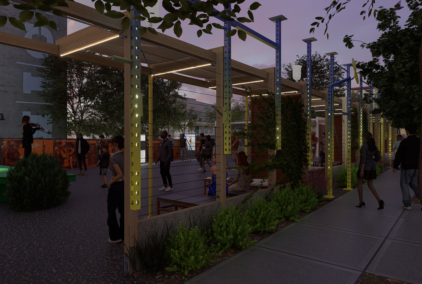 A rendering depicts a new art installation titled “Soft Gym” by the duo Wickerham and Lomax as part of Bloomberg Philanthropies’ $1 million “Inviting Light” initiative. Image courtesy Present Company.