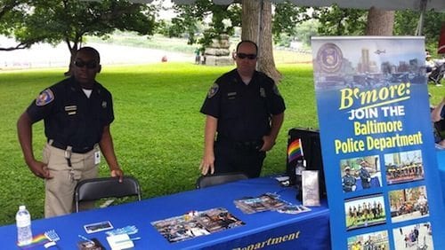 Baltimore Police officers try to drum up new recruits at Baltimore Pride. Photo via BPD Twitter feed.