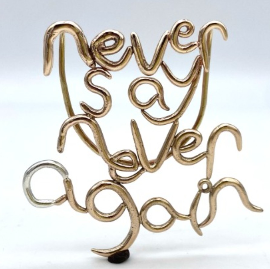 Cindy Cheng, Never Say Never Again, 2023, Bronze and sterling silver, 2.5 x 2.25 x 0.25 in