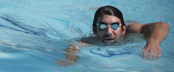 Former U.S. Olympic swimmer Michael Phelps swims during his visit to the Rocinha slum sports complex in Rio de Janeiro, Brazil, Monday, March 11, 2013. Phelps is in Rio to attend The Laureus World Sports Awards. (AP Photo/Felipe Dana)
