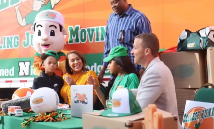 Second from right, Maryland high school volleyball player Alexis Ewing at a Name, Image, and Likeness (NIL) deal signing event with College Hunks. Screenshot via College Hunks/Instagram.
