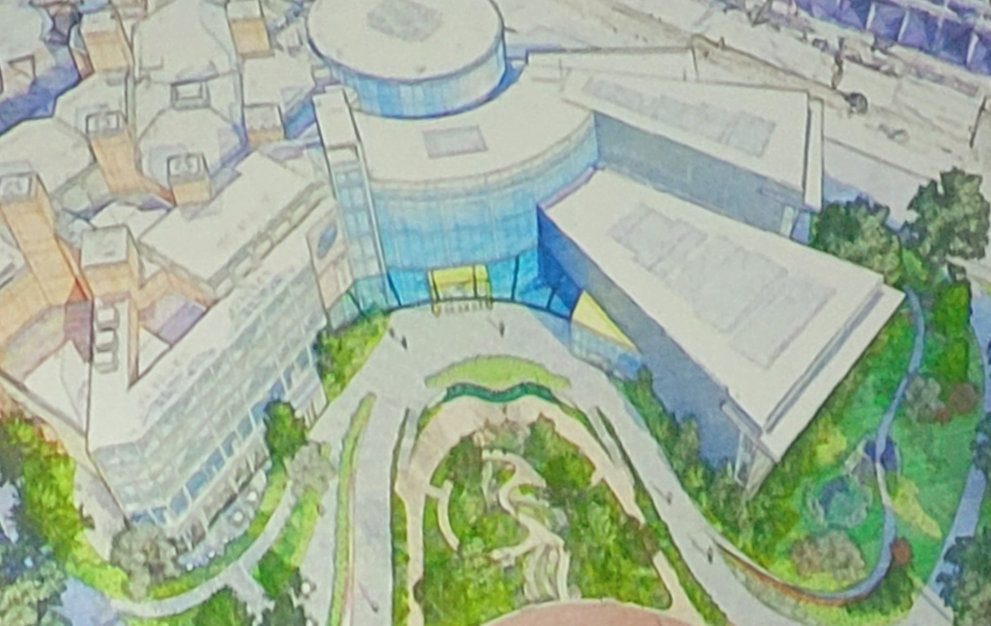 A Maryland Science Center rendering shows a new entry plaza with more greenery. Credit Mahan Rykiel Associates.