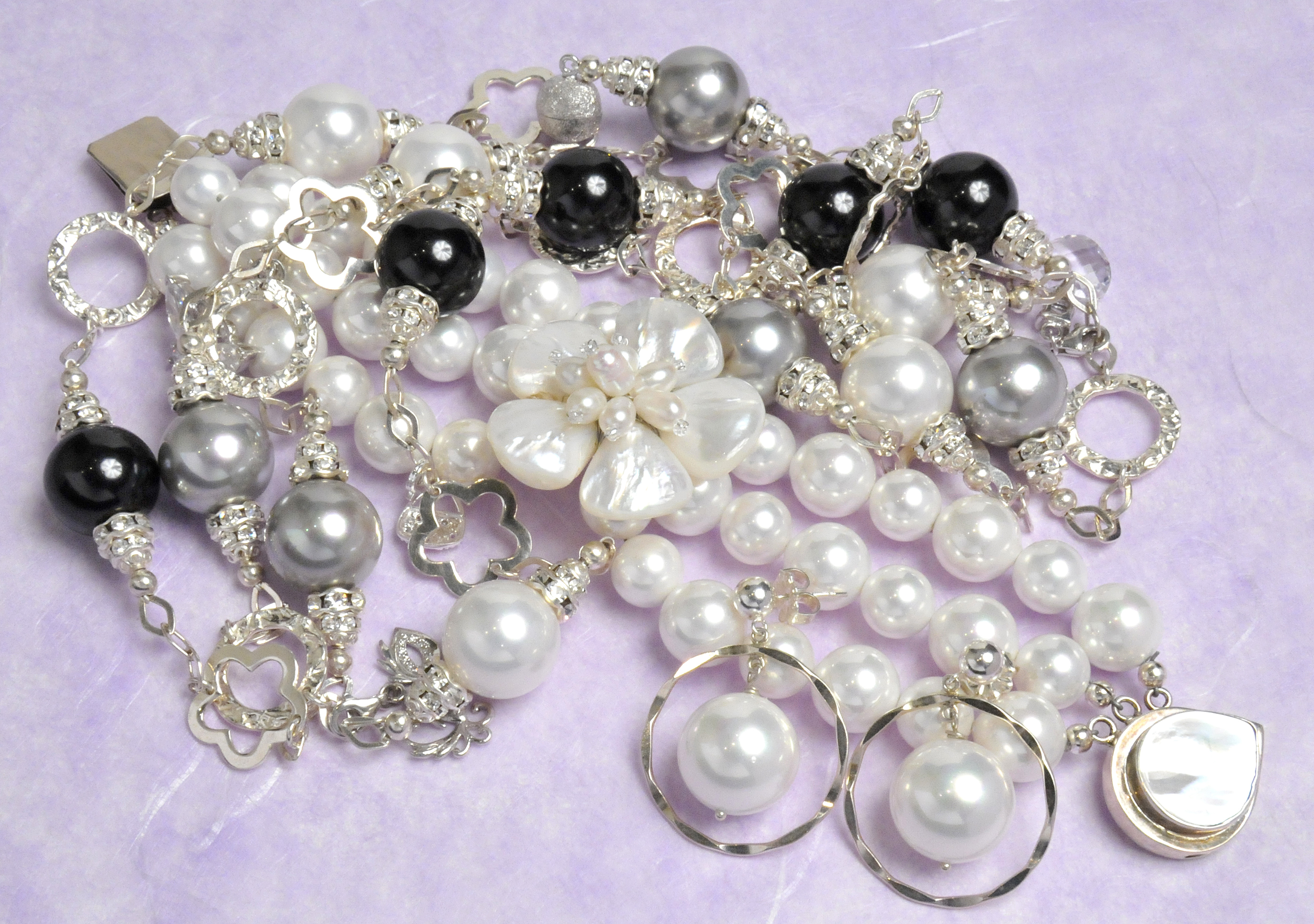 The collection above by jewelry designer Linda Sherr honors the classic and the contemporary, and is described as “Coco Chanel meets old Hollywood.” The bold statement pieces feature dramatic baroque, coin and keishi pearls; natural turquoise; Swarovski crystal; hand-cut crystal quartz; and handmade sterling chain. All necklace, bracelet and earring designs are either one-of-a-kind or limited edition.