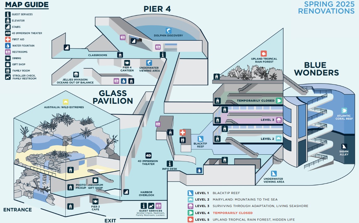A diagram depicts renovations planned for the National Aquarium in spring 2025. Image courtesy National Aquarium.