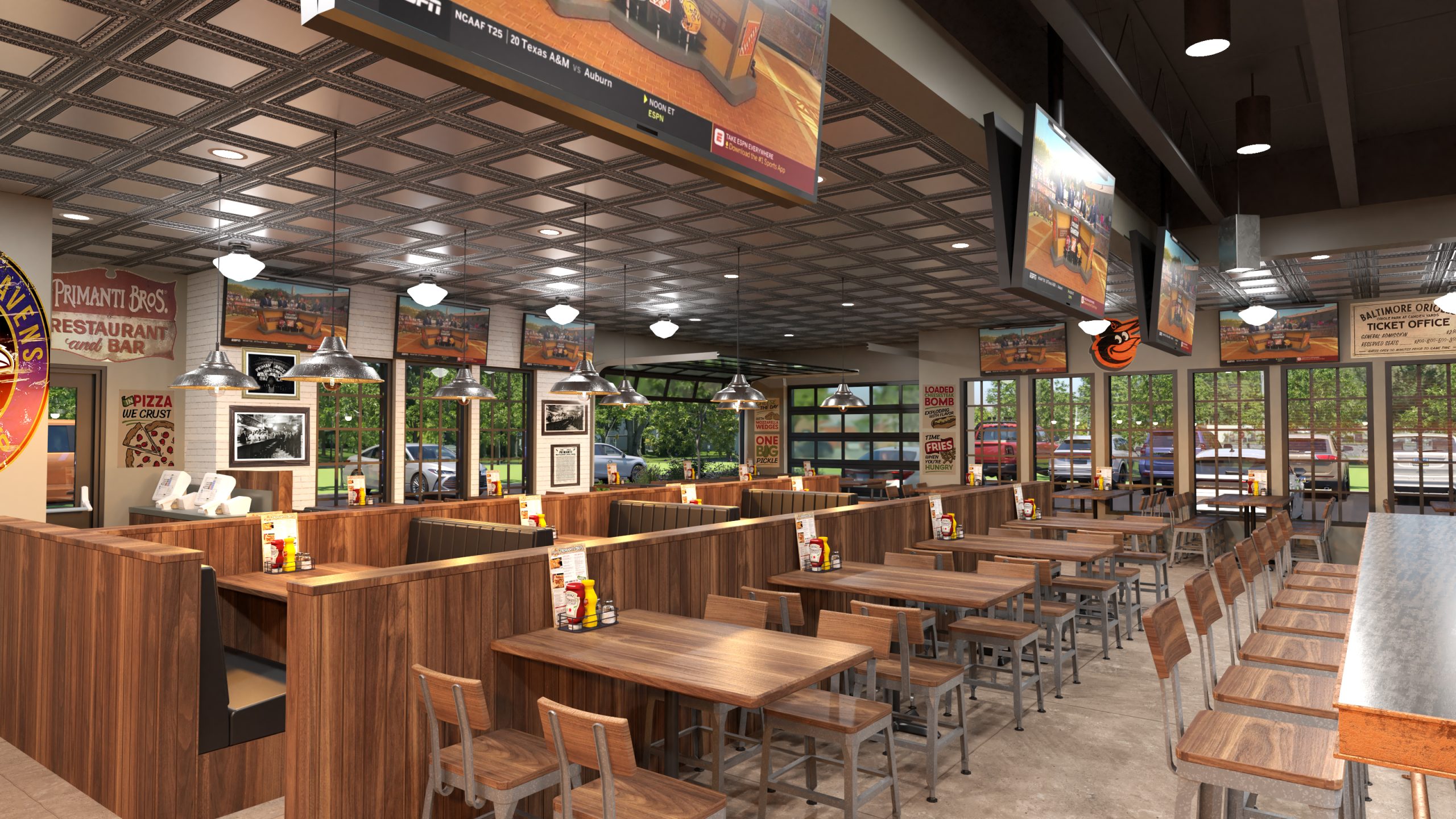 A rendering depicts the interior of a new Primanti Bros. restaurant opening this spring in Linthicum Heights, Maryland. Rendering courtesy of Primanti Bros.