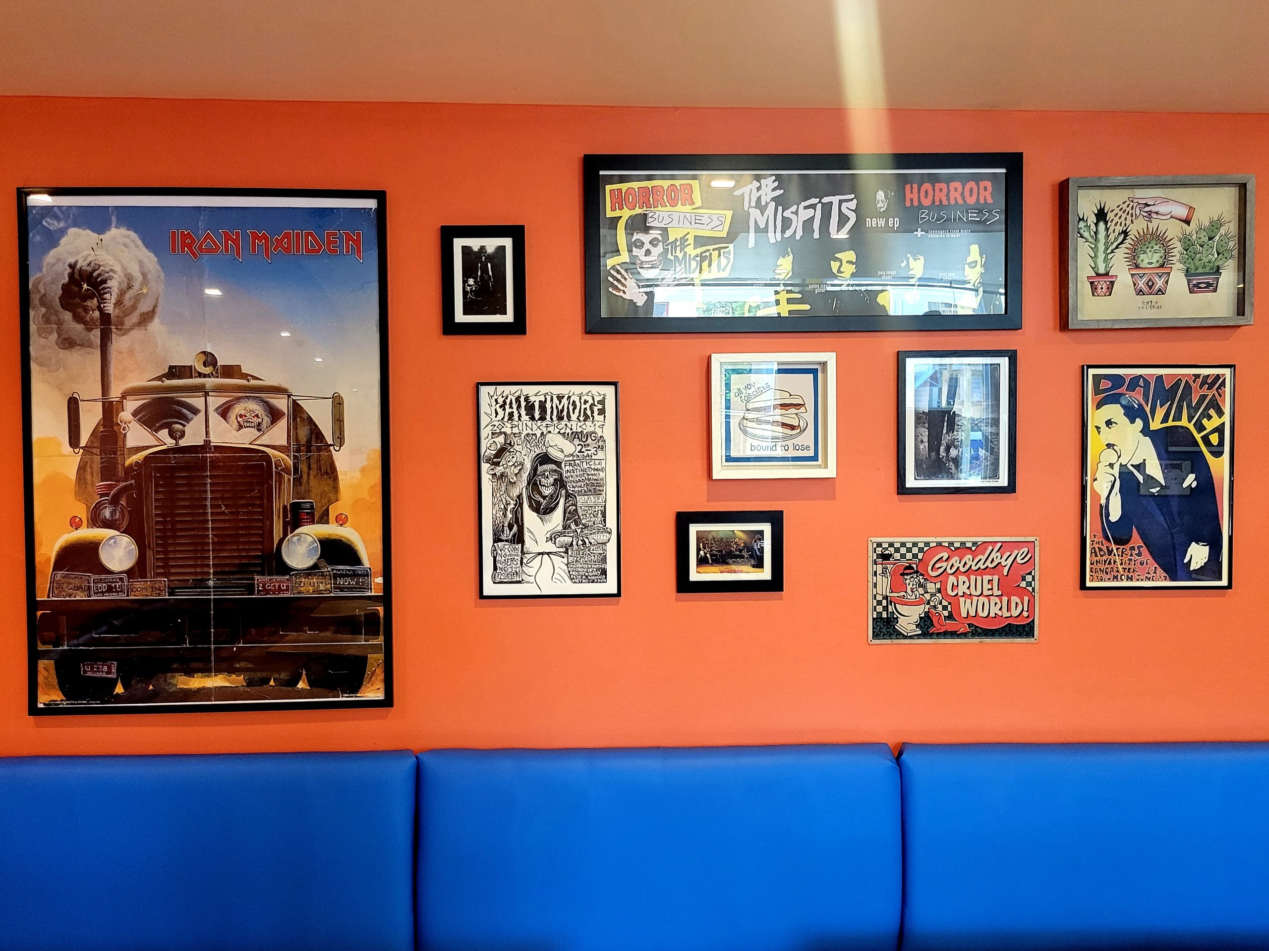 Rock band posters and other artwork hang on the walls inside the new Animal Boy sandwich shop and bar in Lauraville. Photo credit: Marcus Dieterle.