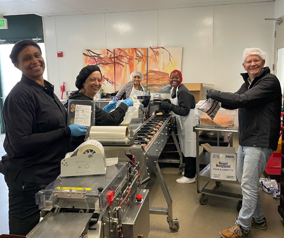 Office staff pitch in to help prepare meals at Moveable Feast. Photo via Moveable Feast’s Facebook page.