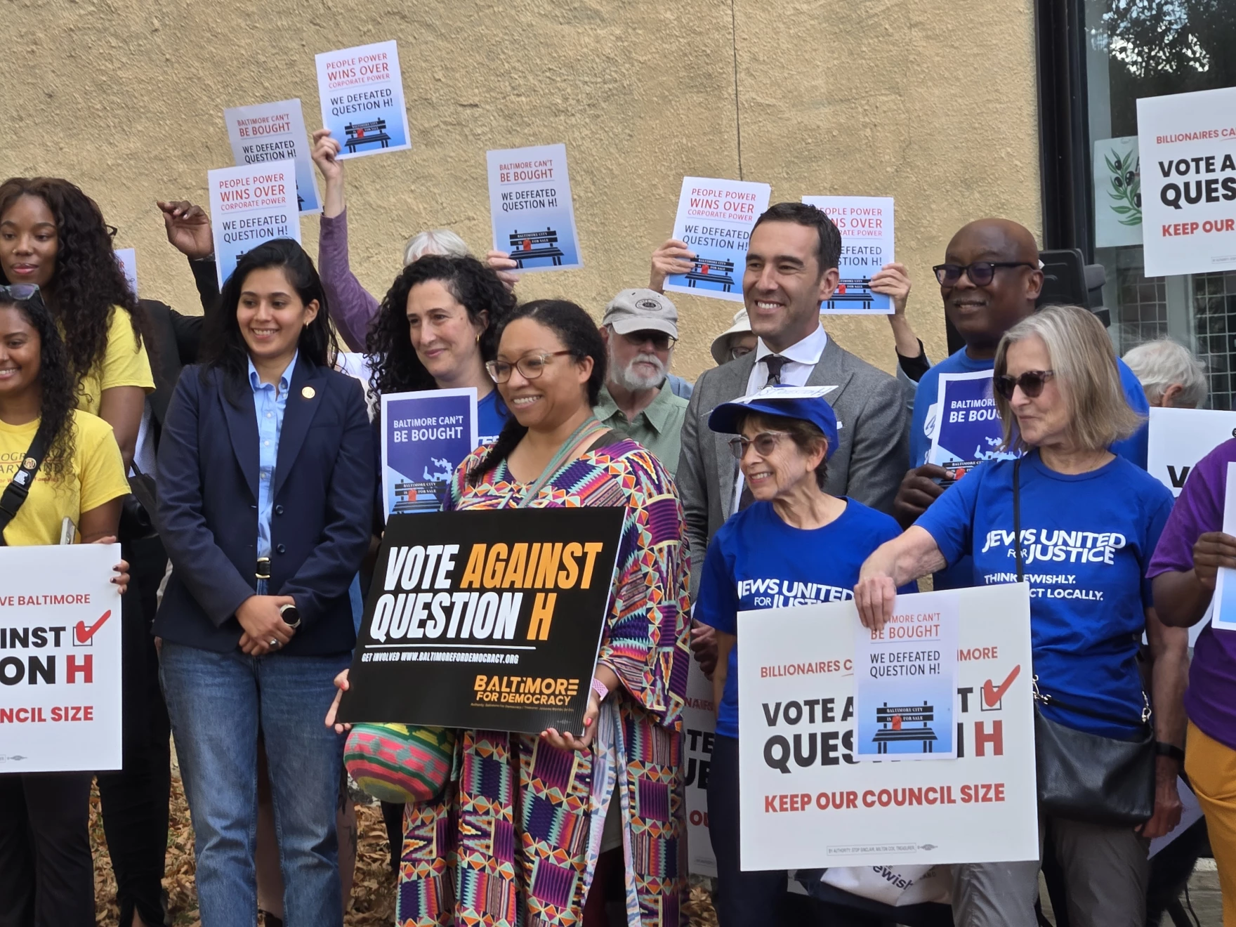 Opponents of Question H celebrate the historic defeat of a ballot question in Baltimore City. Photo by Emily Hofstaedter