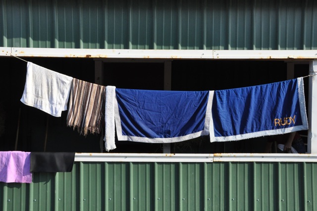 We visited the barn, where the horses spend most of their time, and saw them being washed and groomed.