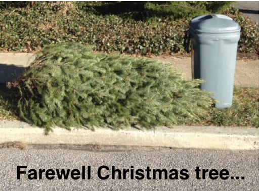 If you’re a Baltimore County homeowner, the good news is that the Bureau of Solid Waste Management not only collects your tree, but also chips your live tree into mulch for future landscaping use. “Treecycling” as it’s known. Place your undecorated tree at your curb (not an alley) between January 12, 2015 and January 17, 2015 for pick-up. If January 12 is too late for you, bring your Christmas tree to one of the County Drop-off locations.