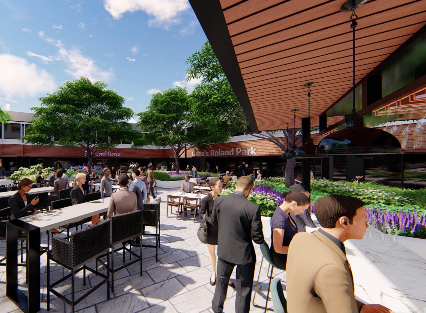 A rendering shows the Cece’s Roland Park restaurant that is planned to open at The Village of Cross Keys in spring 2024. Rendering courtesy of R. D. Jones & Associates.